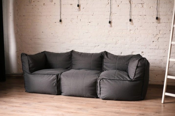 Frameless sofas are furniture of various shapes, which depends on the type of filler used. They have an inner padded cover and an outer padding. The top cover is usually removable, made of durable material that is resistant to dirt and abrasion. There are no hard parts and bases inside, the type of filler used is resistant to moisture and temperature changes.