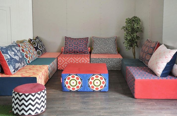 - An example of choosing frameless furniture for arranging an ethnic interior.
