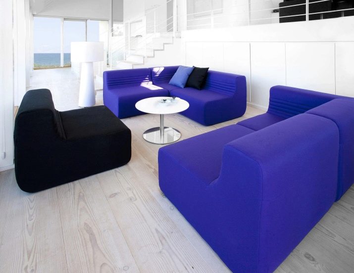 - The arrangement of the guest area with the help of a modular sofa of the angular type.