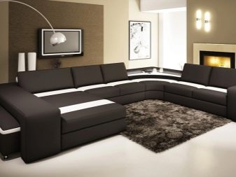The abundance of small contrasting details is unacceptable. All design decisions should be as large as possible. Attention should be paid to the texture of the black and white sofa. Elongated furniture will help visually expand the problem wall. The appearance of the sofa should be discreet, but at the same time, the idea of respectability should be carried out in every way.
