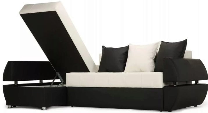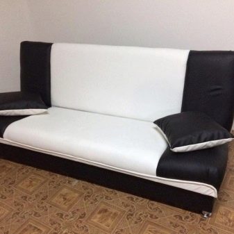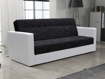 An important role is played by the type of folding mechanism. A "book" (it is also a "click-gag") can be fixed in a lying, sitting or half-sitting position. A container for folding clothes is provided. Such a design will not take up much space. Some “book” sofas do not have armrests, which fans of spacious furniture will surely like.