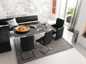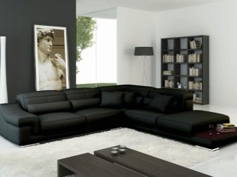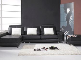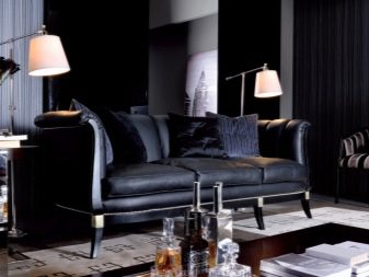 Sizes and shapes can be very diverse, like sofas in other colors. Upholstery is most often used on black sofas from expensive materials, as such furniture emphasizes style, symbolizes luxury. Most often this is genuine leather, eco-leather can act as a replacement.