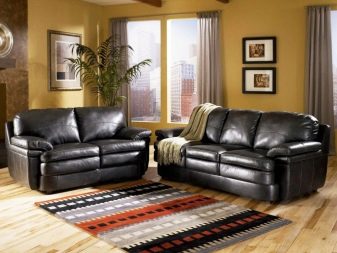 - Classic. Here, a black sofa can be considered the "king", especially if it is made of leather, it looks elegant and expensive. In addition, a carpet of contrasting color will suit it, well-chosen lighting will emphasize the grandeur of such a sofa.