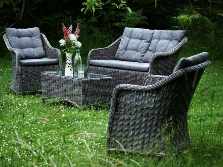 For many years, wicker rattan products have been in great demand, which can be installed both on open areas and on closed terraces. The main distinguishing features are convenience and lightness. For a more comfortable stay, designers recommend using special soft pillows, which not only help to take the body into a comfortable position, but also aesthetically decorate furniture.