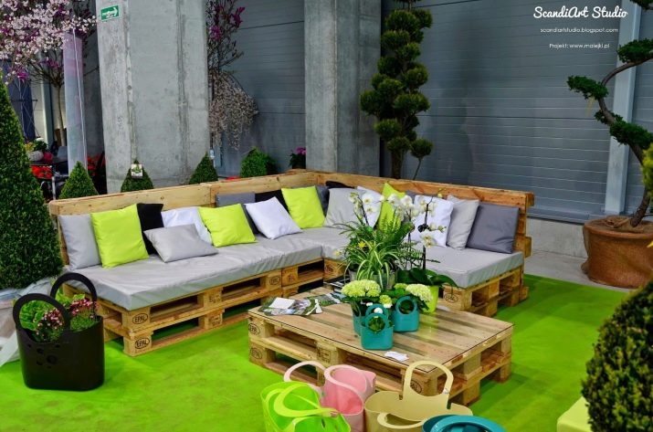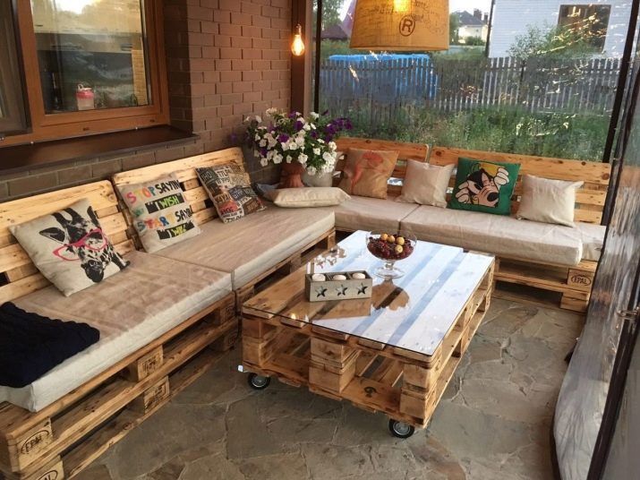 A sofa made of wooden pallets can become not only an interior item, but also a real art object that can be decorated in any stylistic direction.
