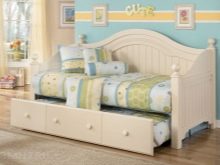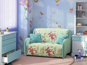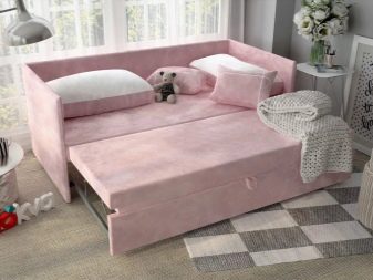 Roll-out sofa is one of the most popular models of upholstered furniture for children from 10 years old. In the assembled state, it takes up very little space, since it is placed close to the wall, this is especially appreciated in apartments where a small room is reserved for a children's room.