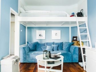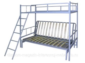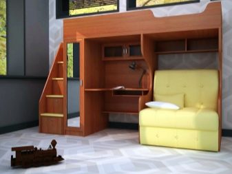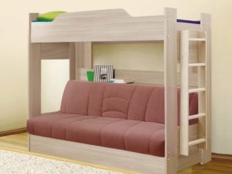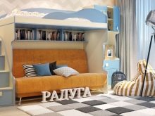 Such furniture is a two-tier structure, in this case the sleeping area is arranged on the top floor, and the sofa is on the bottom.