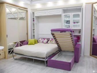 An equally popular option is a sofa with a bed lifting mechanism. In this case, the bed is fixed vertically, and the bed is lowered before going to bed.