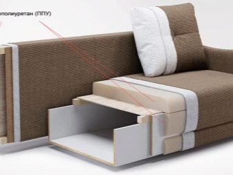 The optimal solution is a couch filled with polyurethane: it will be comfortable to sleep on such furniture, and the internal contents will not lose their shape.