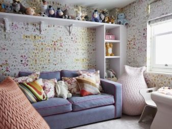 Calm girls fit Provence style furniture. In this case, upholstery with a small print or plain will be appropriate. A set for such a sofa is to sew several stylish sofa cushions, such elements will add comfort to the room.
