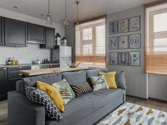 In living rooms and in the kitchen you can place furniture in brighter colors, soft designs of mustard, red and corn shade will help revitalize the situation. So that they harmoniously fit into the general atmosphere of the room, they can be supplemented with multi-colored pillows.