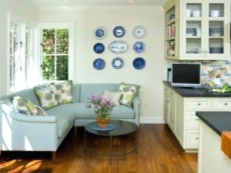 For the arrangement of small kitchens, it is recommended to choose compact artificial leather sofas, such upholstery is easy to clean and does not absorb odors.