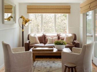 When designing miniature rooms, you can not choose a design in urban style, otherwise they will look too formal. It is also not recommended to use volumetric leather sofas when arranging, they should be replaced with more compact models.