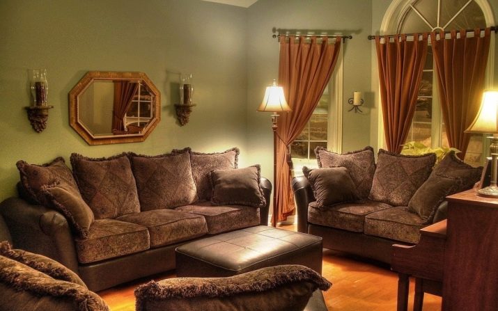 In addition, sofas can be placed against the wall, choosing a place away from the entrance to the room. It is possible to supplement upholstered furniture with a coffee table and a rocking chair.