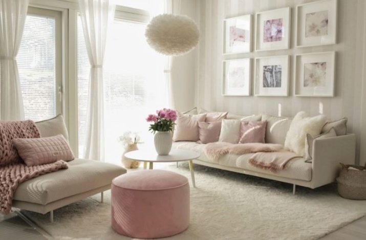 - Living room. The main interior item in this room will be a pastel-colored mini-sofa. It must be supplemented with two miniature armchairs, corresponding to the general style of furniture. Thus, it will turn out to create a magnificent island for relaxation and meeting guests.
