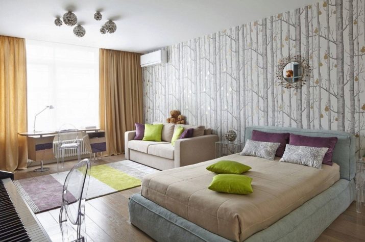 - Great attention should be paid to the combination of soft design with curtains. It is recommended to leave a choice on a translucent tulle, it will help create a feeling of airiness and lightness in the interior of a tiny room.