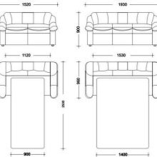 - on 3 places - standard length from 2 to 2.5 m; width is from 800 to 1000 mm; height, taking into account the back, does not exceed 1 meter;