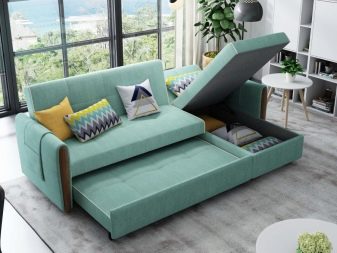 - "Dolphin" also unfolds through the strap. This is a simple and reliable mechanism. As a rule, direct versions of the "dolphin" do not include a linen compartment, while the corner ones have an additional section.