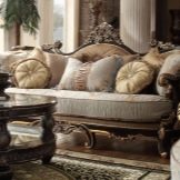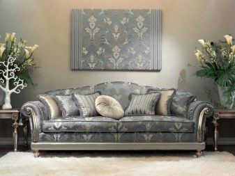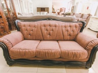An example of a classic style sofa is model "Lyon" from the factory "Potiutkov". For upholstery, they use chenille, velor or flock (optional). The frame has a lifetime warranty. The fabric has a jacquard-like weave.