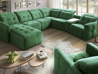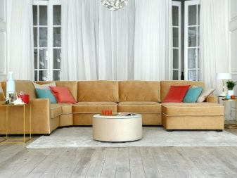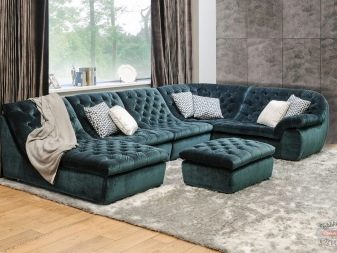 Modular sofas often have non-standard seating areas. You can put such furniture in the room in a variety of ways. Sectional subtype allows the most flexible choice of color and type of upholstery, the design of the armrests and other individual blocks.