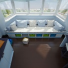 Built-in sofas represent models window sills. They are made in the form of stands with spacious drawers for storing any things. The backs and sides in them are the cushions and sofa cushions, the seat is based on a rigid panel or a thick soft mattress. The tabletop of such sofas can be folding, providing access to storage systems.