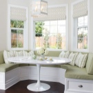 When looking for a sofa model for arranging a bay window, it is necessary to take into account many factors. For example, to begin with, you need to accurately measure the place under the sofa. It is also worth paying attention to the type of wall: it is they that can limit the choice of model. If the shape of the bay window is rectangular, it can be equipped with a compact built-in sofa.