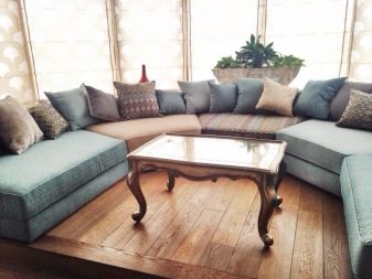 Models of sofas for bay windows can be stationary and transforming. Products of the first type are often compact, while the second ones allow you to organize a berth if you wish. The transformation mechanisms of folding bay windows can be different (with the exception of swivel and folding sideways). These include the “book”, “accordion”, “dolphin”.