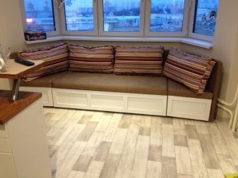 The advantage of such sofas is a significant saving in useful area. At the same time, models can have great functionality, which allows you to bring an unobtrusive organization into space. At the same time, installing a sofa in a bay window creates the effect of increasing space. The advantages of such modifications are many. For example, they are distinguished: