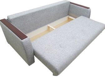 - By the presence of a box for linen. In the vast majority of models, the design provides a box located in the sofa frame under the seat panel. There you can store bed sets, small blankets or pillows.