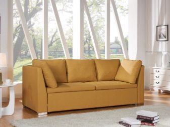 - According to the material of the frame. The basis of the sofa can be presented in three versions: on a metal frame, from high-strength wood or chipboard (MDF). Products with a metal frame are considered the most durable and durable. Wooden ones are the safest from an environmental point of view, usually children's options are produced with a wooden frame. The most affordable and common type is the chipboard frame.