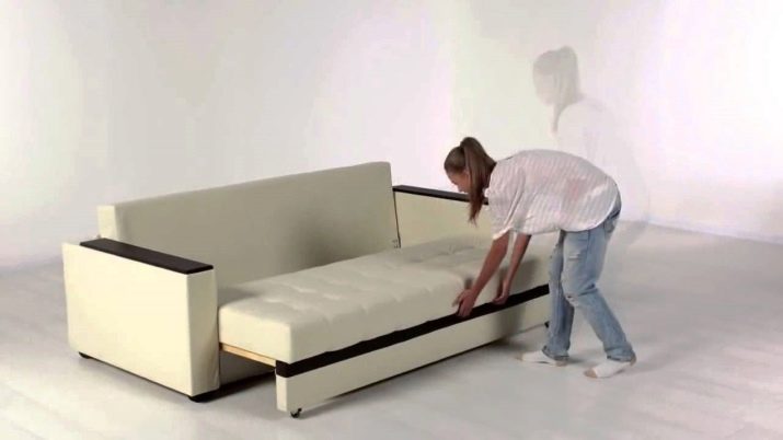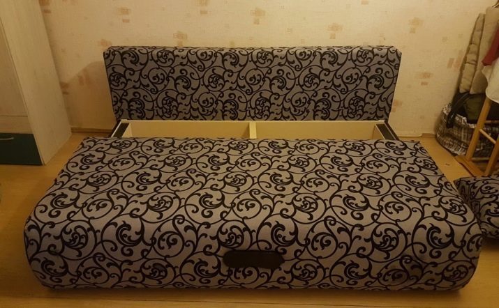 The presence of a special box allows you to store bedding, towels and pillows in the immediate vicinity of the bed. To disassemble the product, pull the base with the seat all the way down. When a hidden section with a linen box appears, the back should be lowered into the vacant space - this forms a comfortable berth.