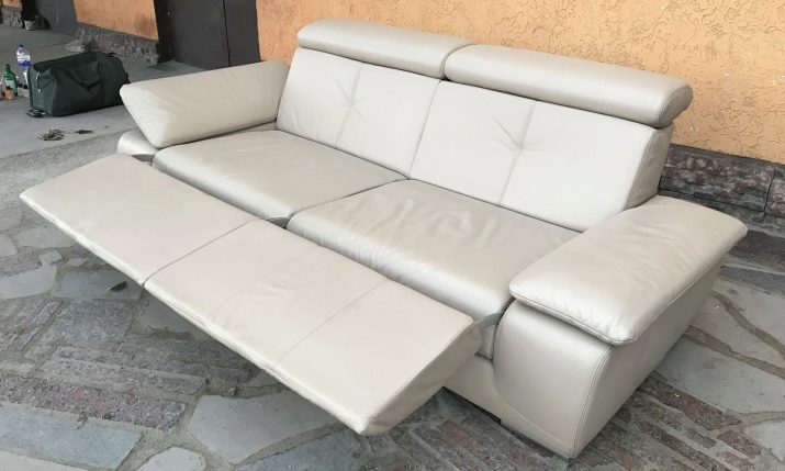 - Recliner. When the backrest is tilted back, such a sofa is laid out in a couch. Most often, they are produced and sold already with a built-in massager and remote control.