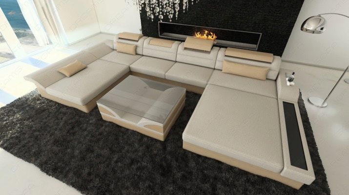 In addition to the foregoing, such sofas can also be equipped with various additional elements, which are a sound system, and additional shelves, and drawers, and a minibar, and even aquariums.