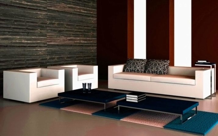 Often the material for upholstery is leather or its artificial counterpart. It is such a solid color material that can give the furniture a distinctive conciseness. If it is a fabric, then usually it differs either by a noticeable rough structure, or, conversely, by a too smooth surface.