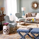 Designers are very fond of combining objects by color. Anyone can use this technique if desired. To different pieces of furniture harmoniously combined with each other, the colors of the ornament must match the colors of this item. These combinations may not be too bright. It can be a color picture or an insert, but they must necessarily overlap with each other. So, choosing plain blue armchairs, you can successfully combine them with a gray sofa, on which there will be a blue color. This technique can work in the opposite direction.