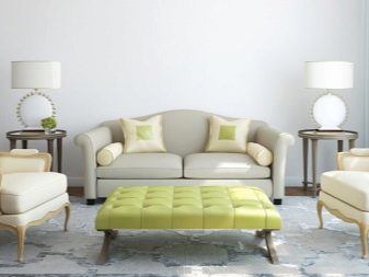 The bedrooms and living rooms are equipped with a large number of upholstered furniture. Among them may be not only standard sofas and armchairs, but also other options of elements familiar to us. For example, an ottoman is able to successfully fulfill the role of a berth.