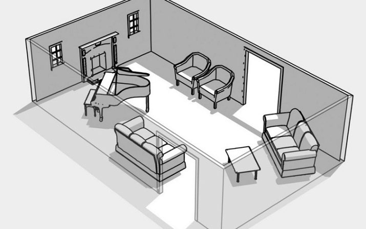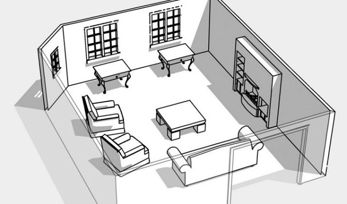 Another way to determine the location of furniture in the guest room will be a drawing made on a piece of paper or on a computer that will help visualize future premises. Consider several classic options for the arrangement of upholstered furniture in the guest room.