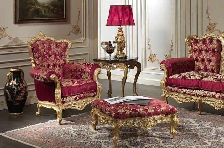 - The upholstered furniture looks colorful and richly in the baroque style. These are expensive rare wood products. Possible decorations with gilding, silvering, bronze. It is better to choose curved furniture that attracts a lot of attention.