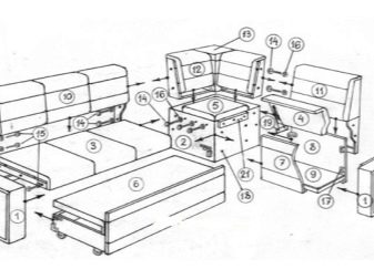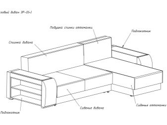 Corner models are presented in a wide range. There are both large and mini sofas. To assemble furniture of any size of the specified type, you need to connect 3 main components of the structure: