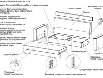 - Studying the accompanying documentation, which comes in a set with upholstered furniture, you should pay attention to the declared package bundle. All necessary components must come complete with furniture design. Make sure of this before starting all work.