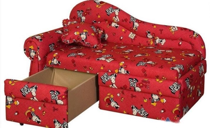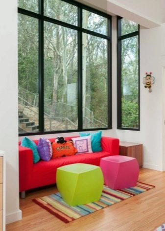 A mini-sofa is a wonderful choice for a children's room. Colorful shades are often used in the design of bedrooms for children.