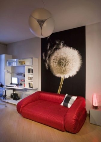 When choosing furniture in size, consider the dimensions of the room and the stylistic direction. A small double sofa is perfect for a room in the style of minimalism. This direction is based on conciseness and simplicity. Compact models of bright color dilute the same and faded decor.
