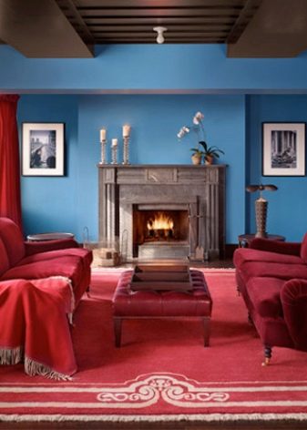 - Blue. It is the exact opposite of red. Unlike scarlet, it is a “cold” color. The combination of two tones creates a juicy contrast, which is complemented by white.
