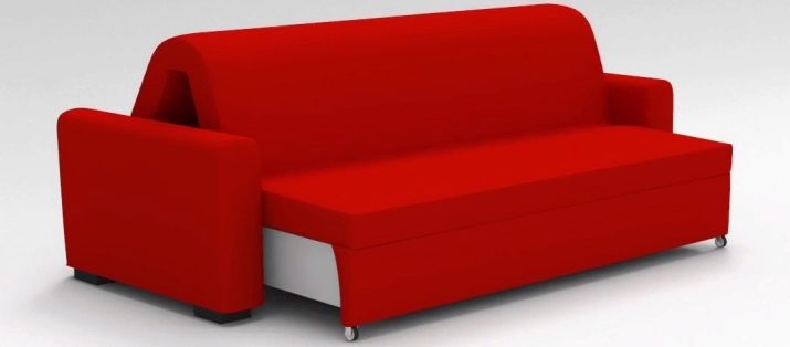 - Accordion. The transformation of furniture is based on the accordion principle. The bottom of the sofa is pulled forward, and the other two parts are lowered.