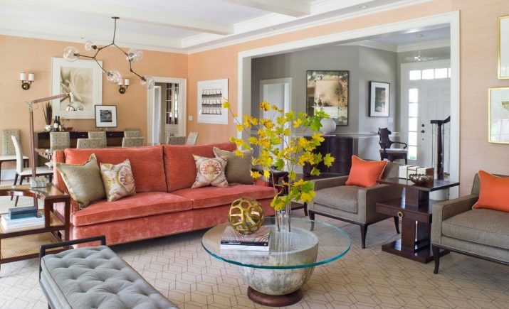 - Coral. A fashionable shade that attracts the attention of many designers is ideal for the art deco trend.