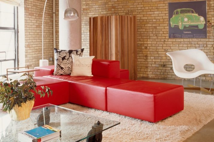 Sofas in red shades are presented in different forms. Consider the most popular of them.