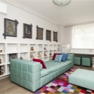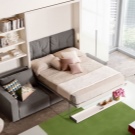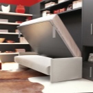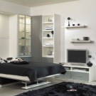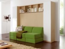 Built-in furniture that retracts into the wall is quite extraordinary. Sometimes its transformation involves the imposition of a sleeping unit on a sofa with the simultaneous transformation of countertops into reliable structural supports. In other cases, to lay out the bed in a full bed, you have to remove the individual modules of the sofa. When assembled, such structures are very compact, since the bed unit is raised perpendicular to the wall.