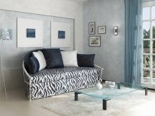 The design of the product is striking in its variety of forms. Models can be strict linear and laconic or extraordinary. Fancy sleeping options loft style may have metal wheels instead of legs. Their armrests are sometimes even similar to the sides of metal shelving. Such furniture is perfect for arranging rooms in a youth style. Other designs, on the contrary, are distinguished by luxury and an abundance of decor.