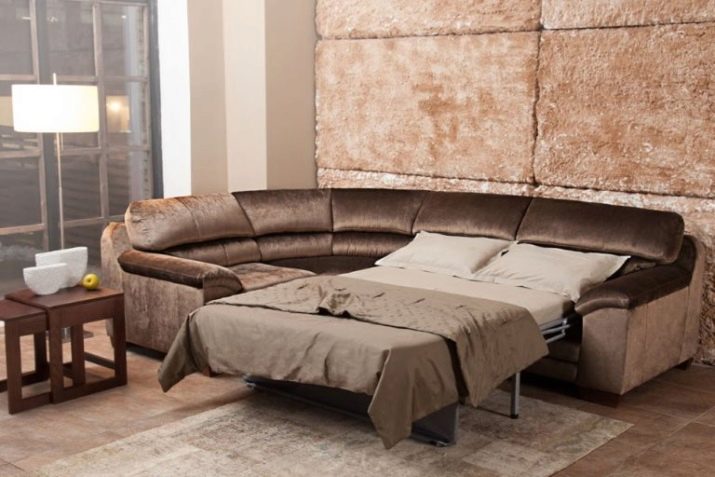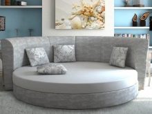 The shape of the sofa bed may be non-standard. In the assortment of brands there are models of round and radius shapes. And if the radius products are made in the form of a part of a circle, round modifications in assembled form a figure in half a circle. They become a full circle after transformation. The sizes of such products vary, as does the shape of their backs. Functionality they add compartments for storing bedding, located under the seat. Products of this type can be standard and low, filled with a small and thick layer of packing.