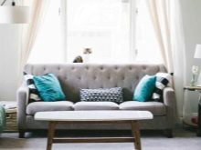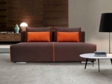 - Sofa bed-couch with a back in the form of a roller, chosen to equip the living room in neutral colors.